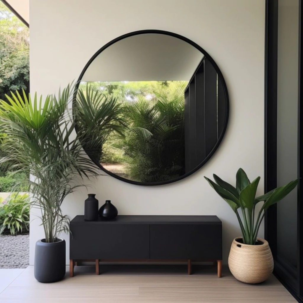 Este espejo es una pieza decorativa moderna y elegante que combina la funcionalidad de un espejo con la estética industrial del hierro. Este tipo de espejo presenta un marco alrededor del espejo central hecho de goma opaca que imita la apariencia y textura del hierro.