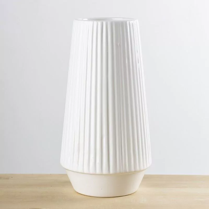 El jarrón alto de cerámica con rayas verticales en blanco es una pieza de decoración versátil y elegante que combina perfectamente con cualquier estilo decorativo. Si estás buscando agregar un toque de estilo y elegancia a tu hogar, ¡este jarrón es la elección perfecta para ti!