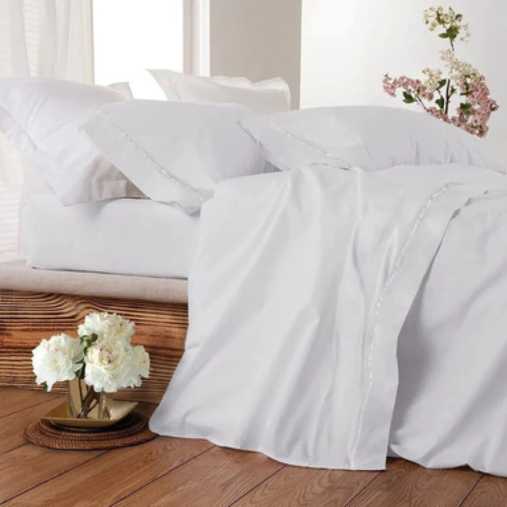 Juego sábanas lisas con embozo y vivo satén. 200 hilos – 100% algodón. SUPER PREMIUM –